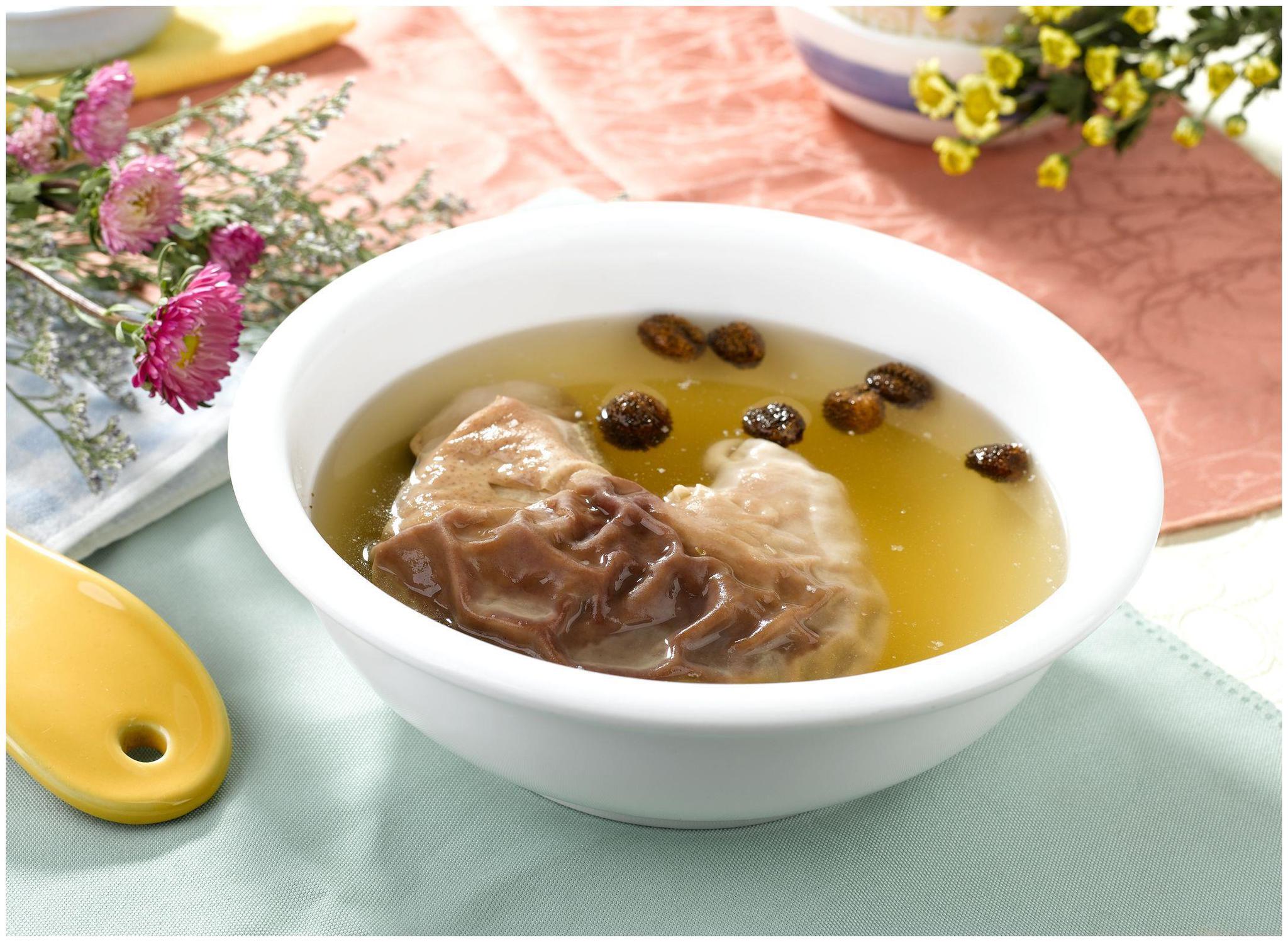 特点:此汤含蛋白质、脂肪、糖类、钙、磷、铁、维生素B1、维生素B2、尼克酸、维生素C等。