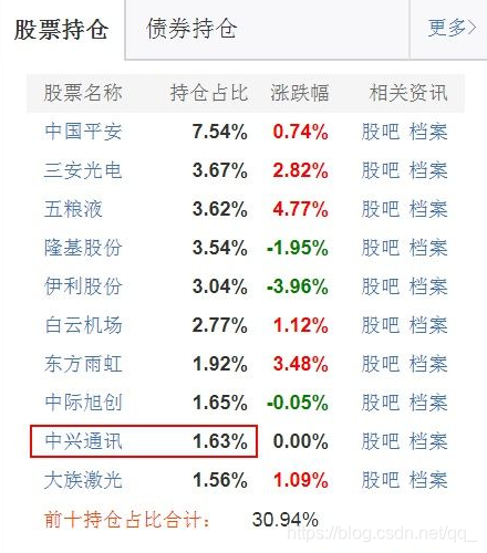即使中兴通讯是它的前十大重仓股,也不过才1.63%的比例。