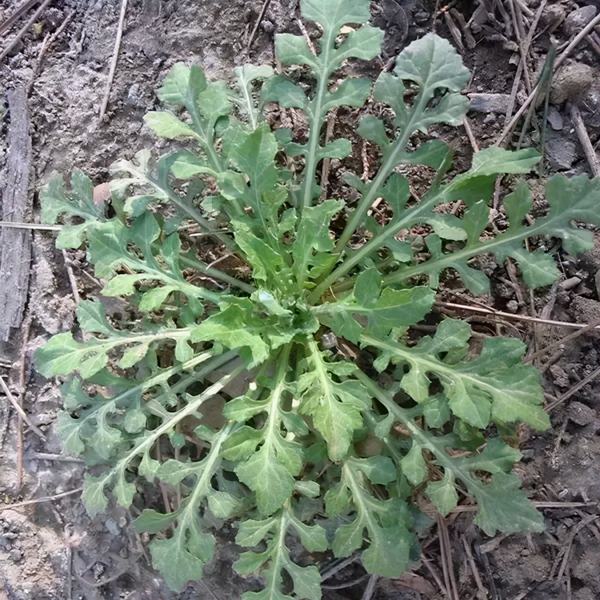 荠菜小画像:叶子呈锯齿状,但不是很规则,深浅、大小不一;根呈白色;叶子摸起来有点粗糙;闻起来有股清香。
