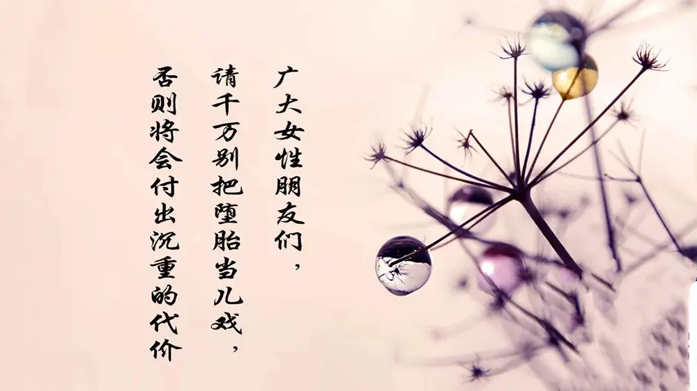 还有就是堕胎之后身体的调养问题,你以为堕胎了就完事了,错!没有一个月的精心调养,都会给身体造成极大的伤害,以后的病症会等着来折磨你!