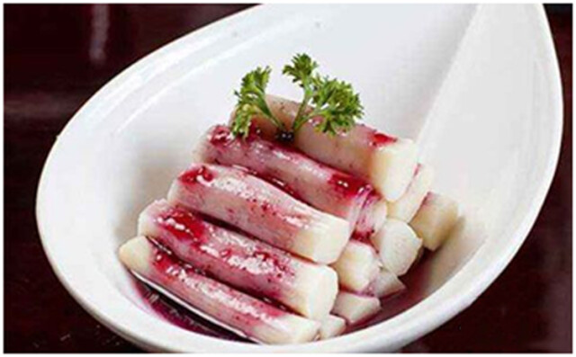 制作:将鱼鳔、猪蹄洗净,猪蹄切成块,同放入沙锅中,加水、酒、食盐、葱、姜,炖至猪蹄酥烂,即可服食。