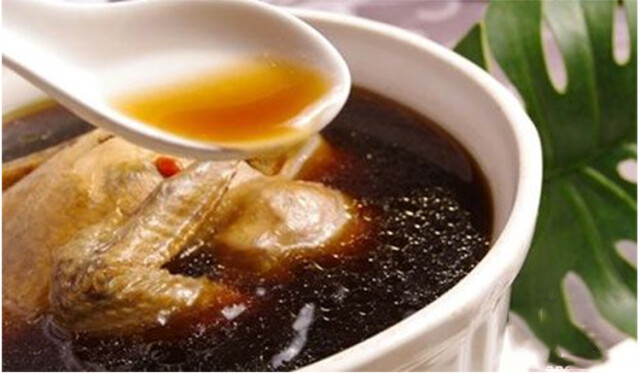 制作:活三黄母鸡常法宰杀,去皮,净膛去肠杂;何首乌研碎,装入纱布袋中,填入鸡腹。鸡入沙锅,加清水至淹没鸡体,文火煨至肉熟,取出首乌袋,再加入料酒、细盐、生姜、麻油等调料,文火再炖半小时即成。