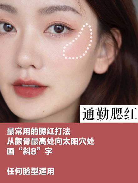 粉色和暖橘色的腮红比较适合多数亚洲人的肤色,对于不会画腮红的人而言,下面这六种方法,最简单且最时髦。