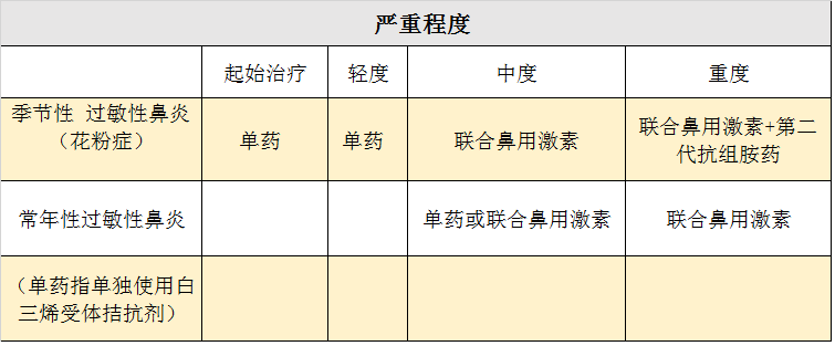 一线用药:鼻用糖皮质激素、抗组胺药、白三烯受体拮抗剂